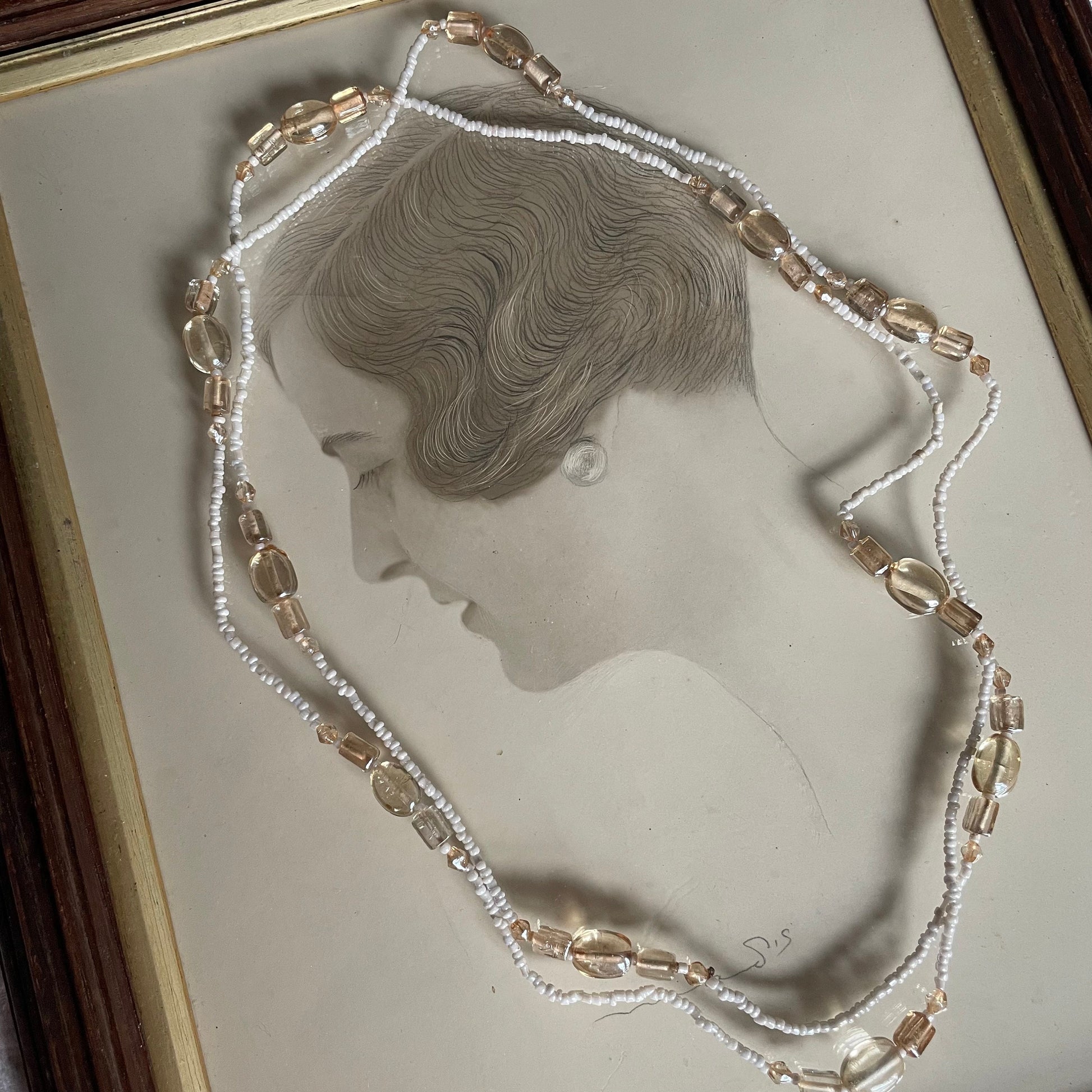 Antique 1920s 1930s Art Deco Micro Seed Long Flapper Necklace