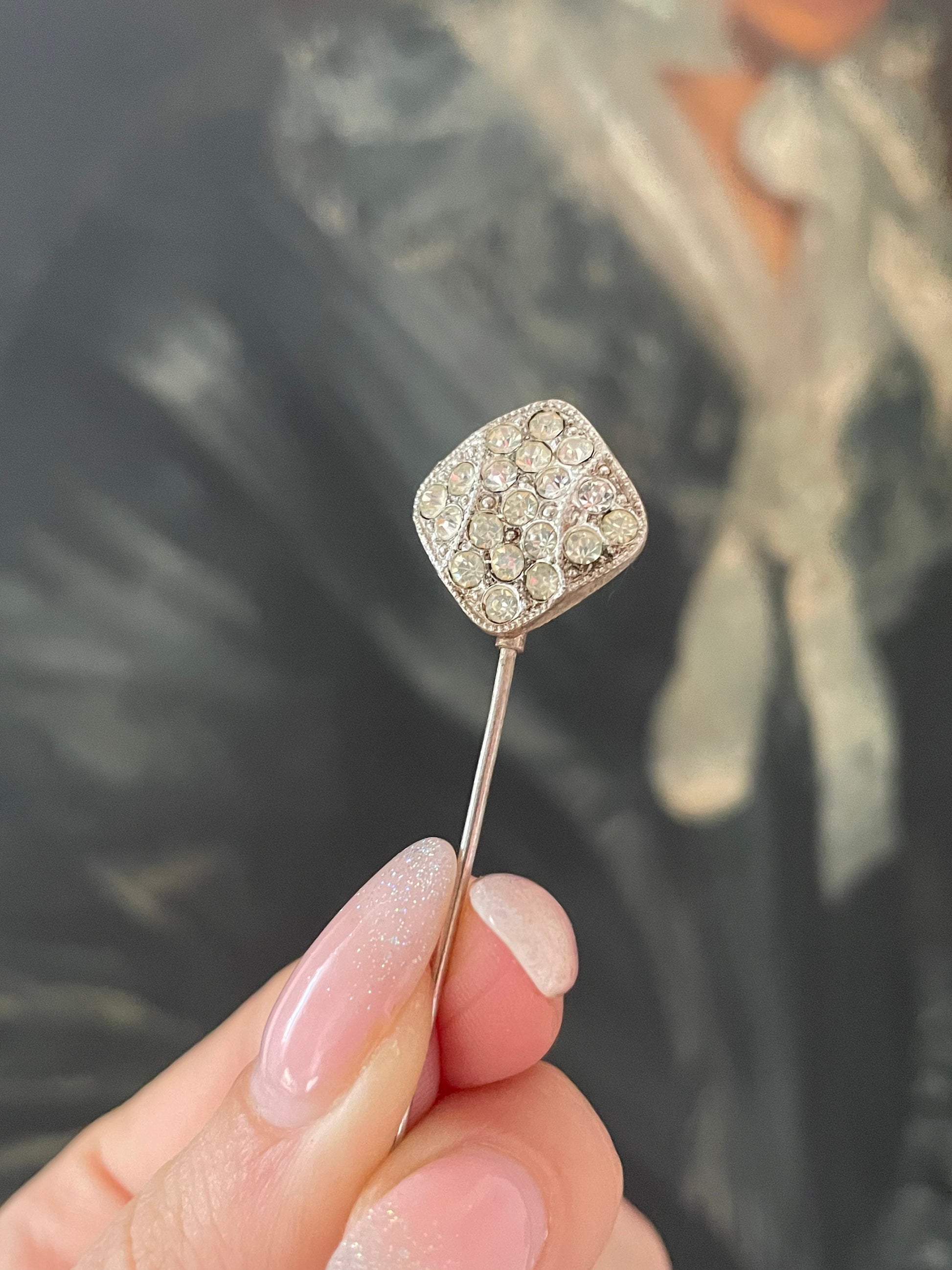 A fabulous Edwardian or Art Deco 1910s 1920s stick pin encrusted with clear sparkly paste stones.