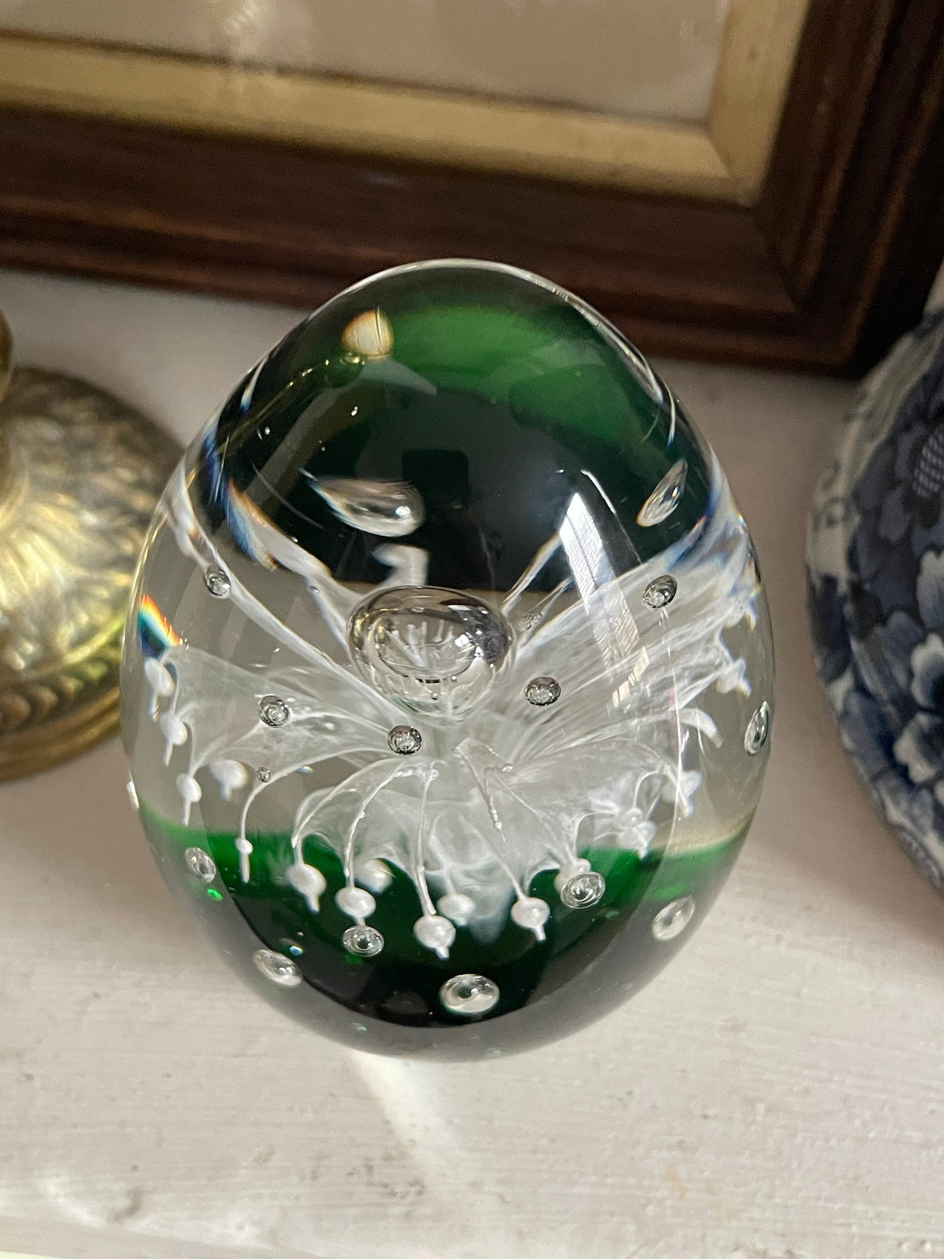 Vintage Mid-Century Egg Shape Glass Paperweight - Interesting Design